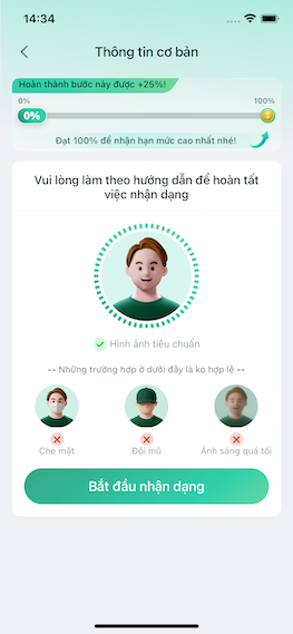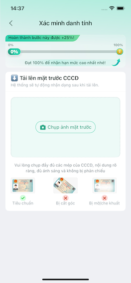 Sau khi nhập số tài khoản ngân hàng thành công, bạn bắt đầu chụp ảnh CMND, ảnh chân dùng cùng với CMND và tải lên hệ thống của LamVay.