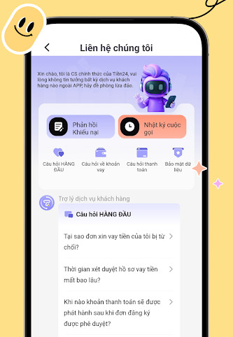 Trong quá trình vay và thanh toán, nếu bạn có bất kỳ thắc mắc hay khó khăn, các bạn có thể liên hệ ngay với Tien24 qua hotline.