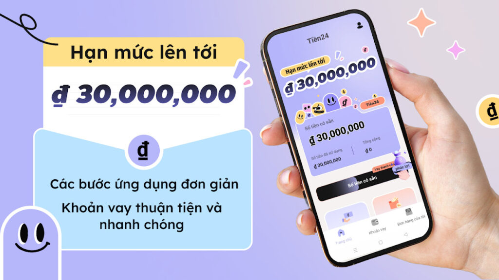 Tiền24 là app vay online chuyên cung cấp dịch vụ vay tiền nhanh để giải quyết tình trạng tài chính khẩn cấp. Chỉ cần CCCD/CMND như là một giấy tờ tuỳ thân là bạn có thể vay tối đa 30 triệu đồng với thời hạn khá thoả mái từ 3 – 12 tháng.