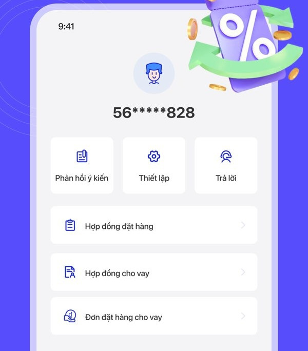 - Bước 1. Đăng nhập vào tài khoản trên ứng dụng Lavi Finance bằng số điện thoại đăng ký.