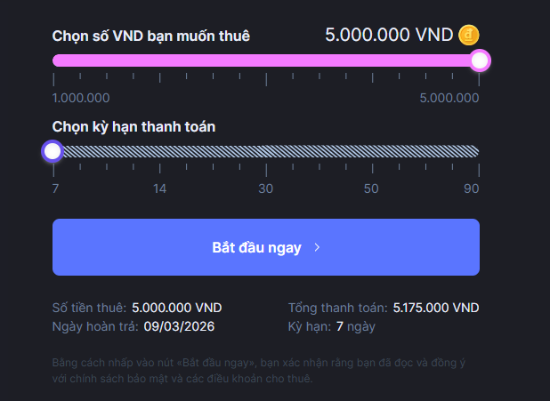 - Chọn số tiền cần vay và lệnh “đăng ký vay”;