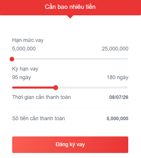 - Thực hiện 100% online với thủ tục đơn giản, giải ngân nhanh chóng qua tài khoản ngân hàng.